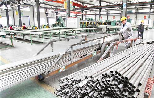 行業(yè)資訊 當(dāng)前位置:首頁(yè)>>信息中心>>行業(yè)資訊 梁平打造百億級(jí)不銹鋼產(chǎn)業(yè)集群 時(shí)間:2019-06-13 作者:無錫不銹鋼板 瀏覽:0 2月22日,在梁平區(qū)工業(yè)園區(qū)的重慶巨源不銹鋼制品公司二號(hào)生產(chǎn)車間,工人在運(yùn)輸無錫不銹鋼管。該公司產(chǎn)品暢銷全國(guó),目前正開足馬力生產(chǎn),預(yù)計(jì)今年可產(chǎn)無錫不銹鋼管15萬噸。 據(jù)了解,梁平區(qū)計(jì)劃引進(jìn)50余家不銹鋼制品廠,力爭(zhēng)3年內(nèi)打造成為百億級(jí)不銹鋼產(chǎn)業(yè)集群,推動(dòng)產(chǎn)業(yè)結(jié)構(gòu)調(diào)整和轉(zhuǎn)型升級(jí)。 上一篇:鋅鎳:下游不銹鋼需求較好 中期鎳價(jià)偏強(qiáng) 下一篇:2月22日鎳與無錫不銹鋼板比價(jià)指數(shù)為86.19